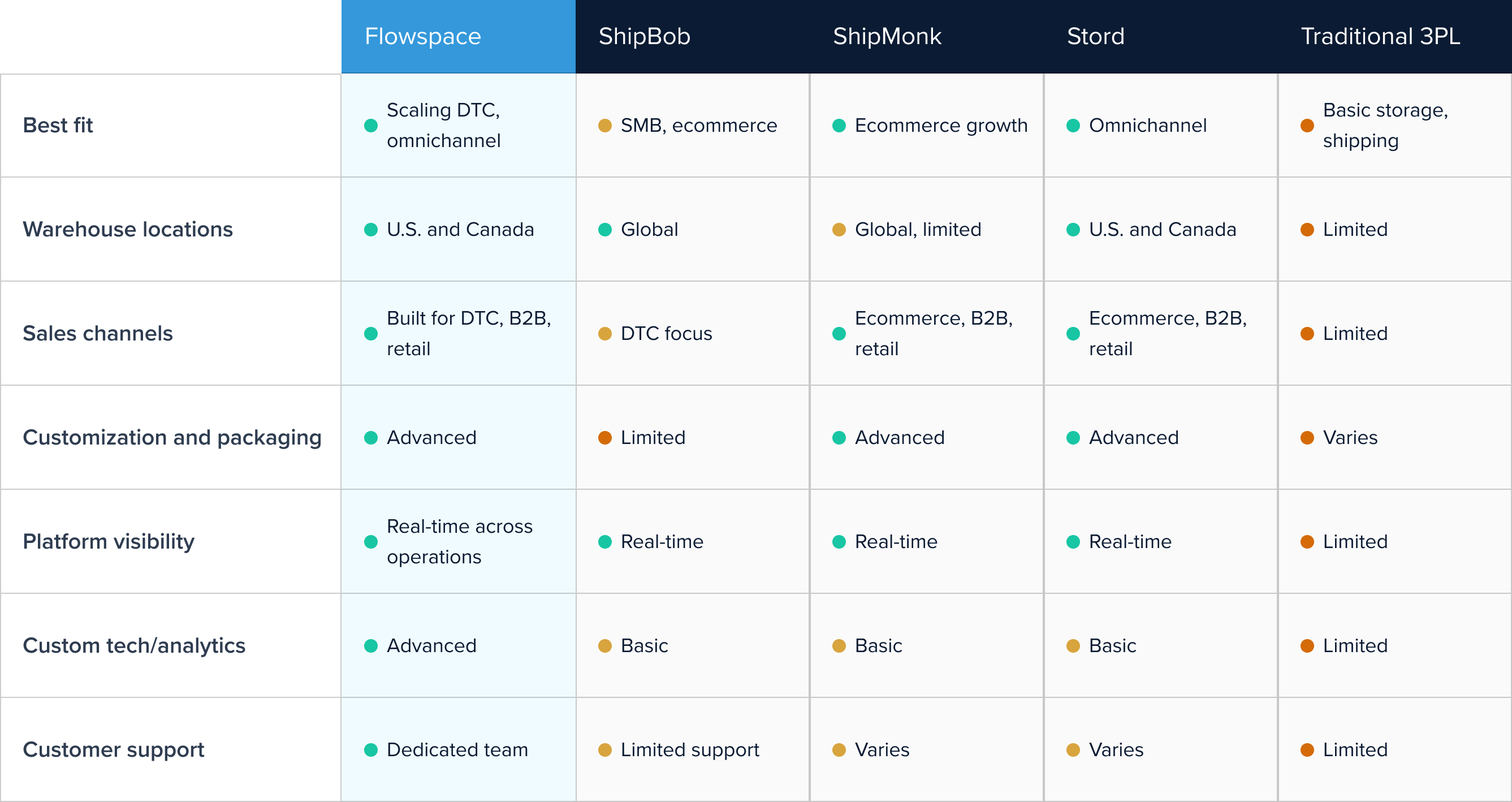 Flowspace vs. ShipBob, ShipMonk, Stord & 3PLs