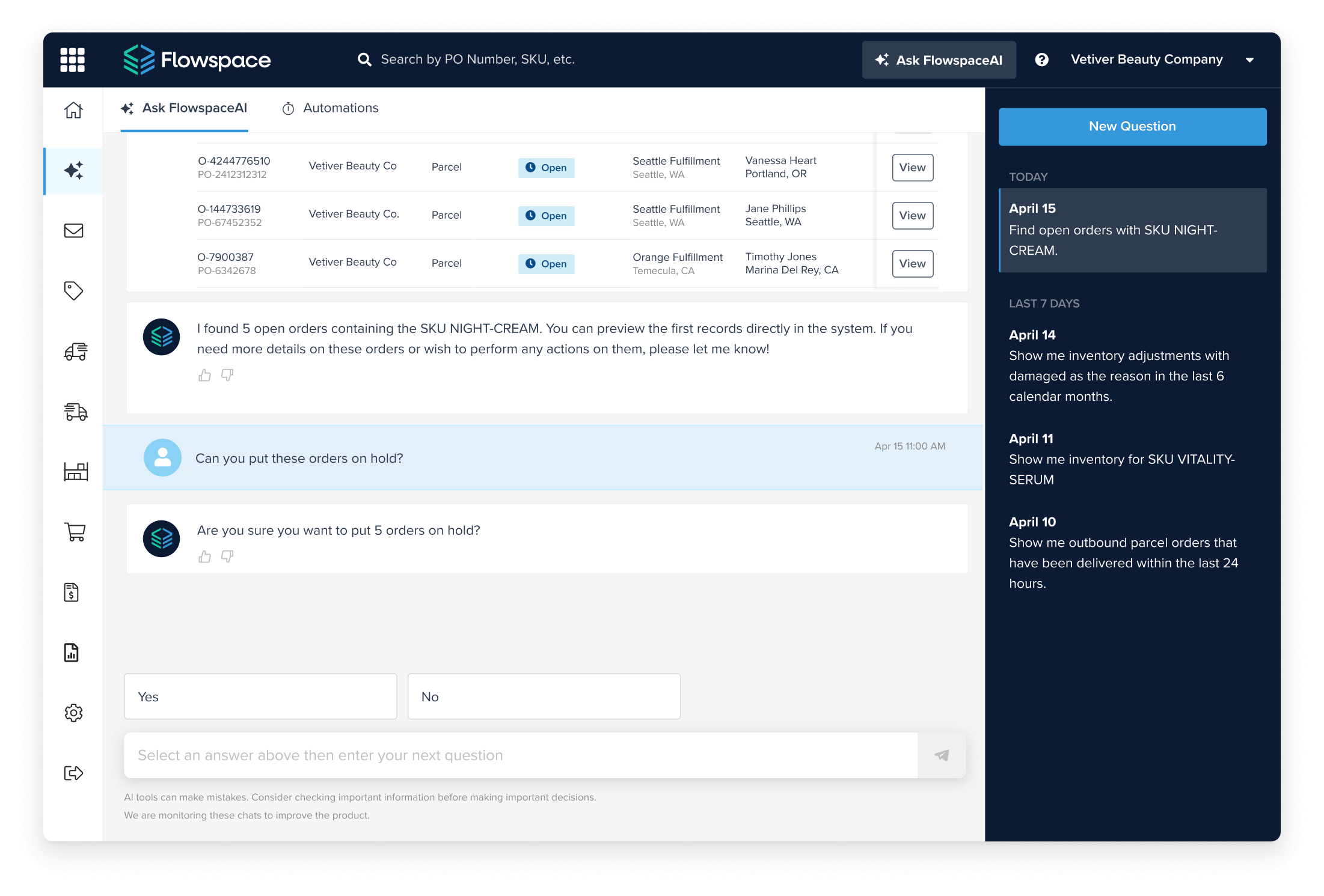 “FlowspaceAI has been an invaluable asset. It’s helped me clarify order information and shipping-related questions efficiently and accurately. I no longer spend unnecessary time searching for this information, thanks to the AI’s capabilities.”
